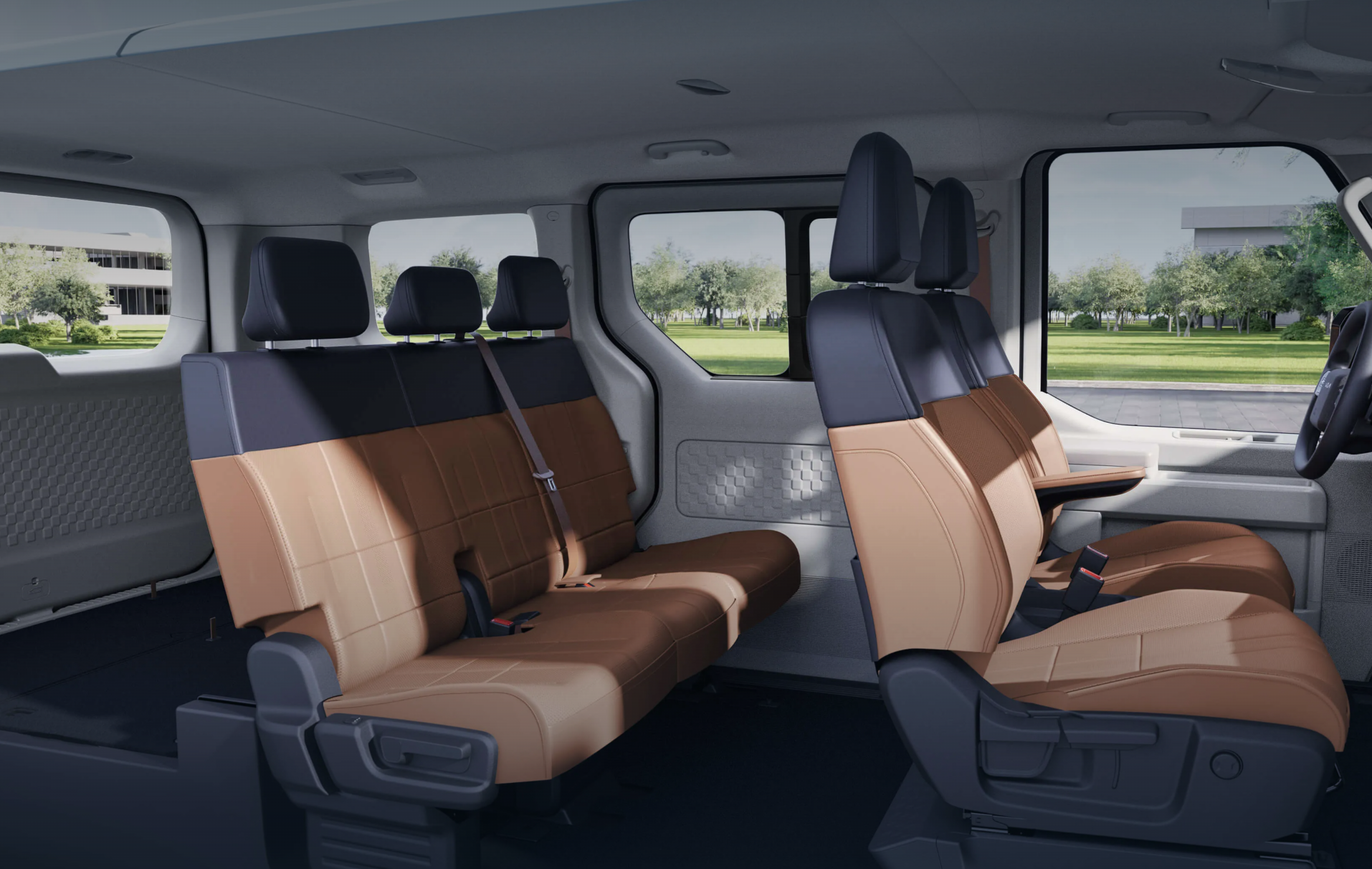 Opplev benplassen på hver seterad som det flate gulvet muliggjør. Høyvoltsbatteriet er nemlig plassert flatt under gulvet, noe som gir et større interiørvolum. Plattformen tilbyr også en svært lav innstegshøyde på 399 mm for ekstra bekvemmelighet.